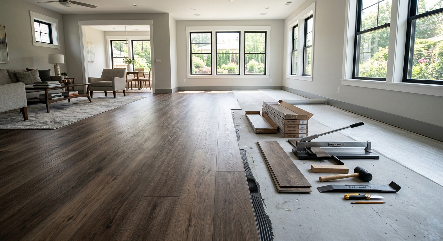 Planchers vinyle de luxe — imperméables et durables, idéaux pour sous-sol.