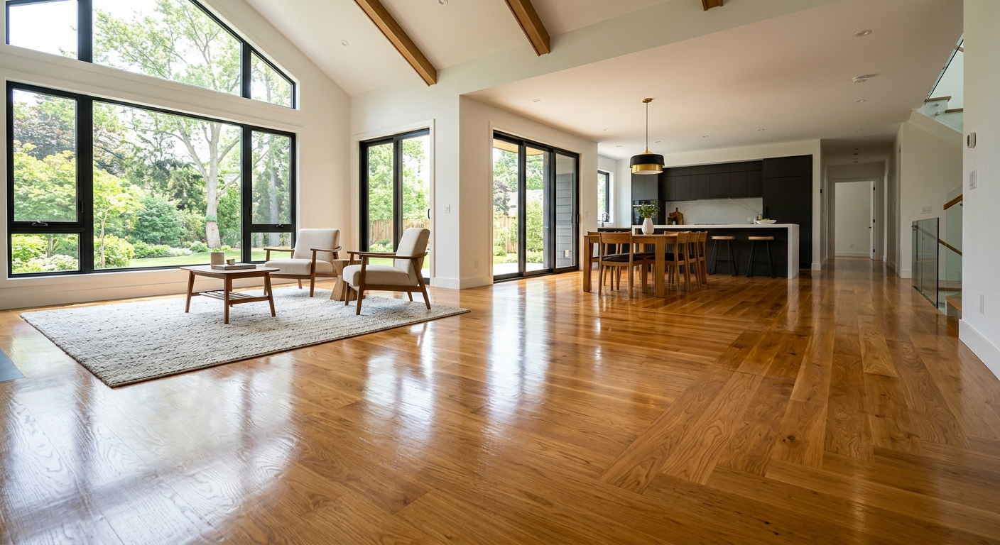 Installation de planchers en bois franc (chêne, érable, noyer) à Gaspé.