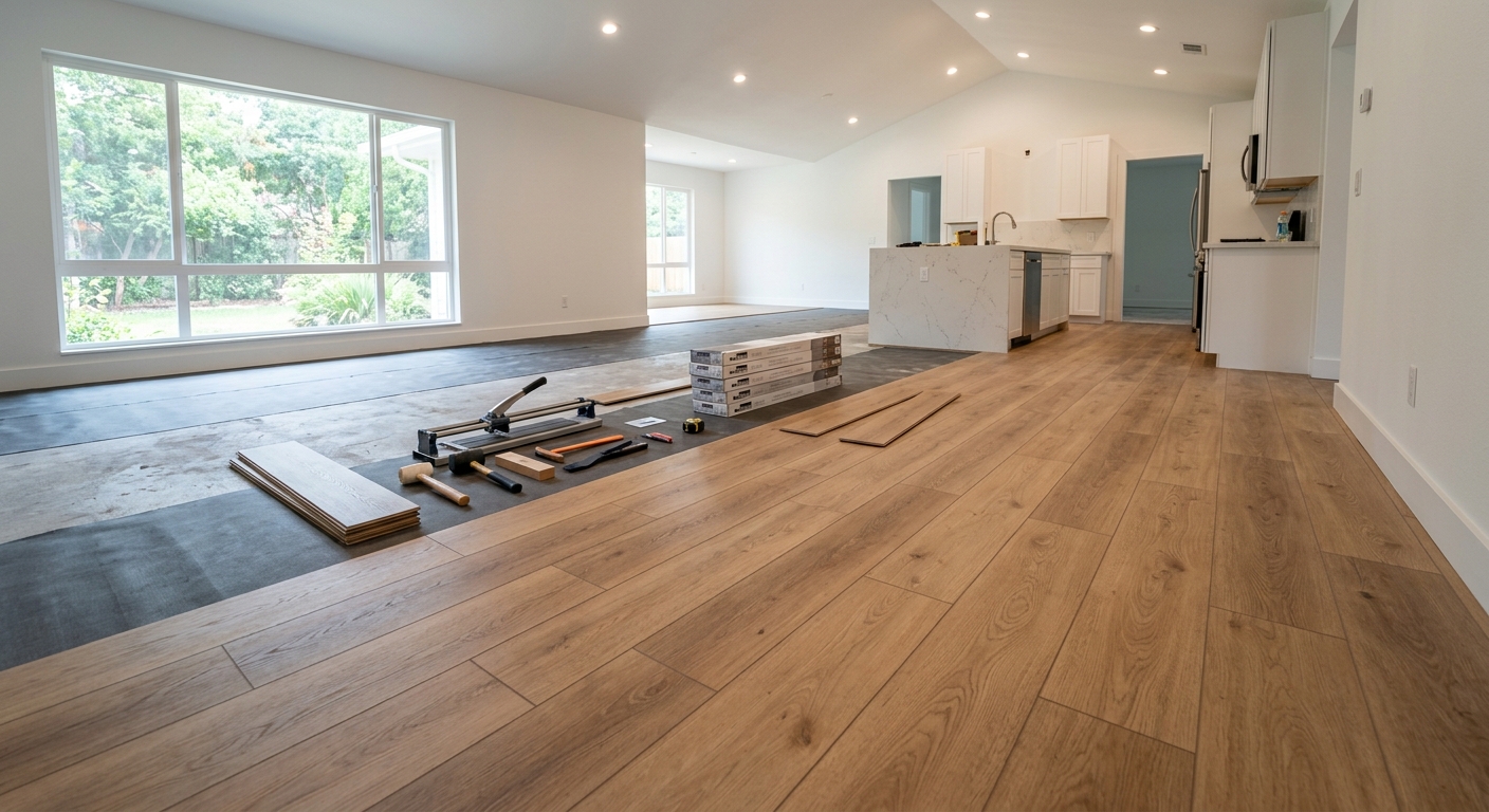 Planchers vinyle de luxe — imperméables et durables, idéaux pour sous-sol.
