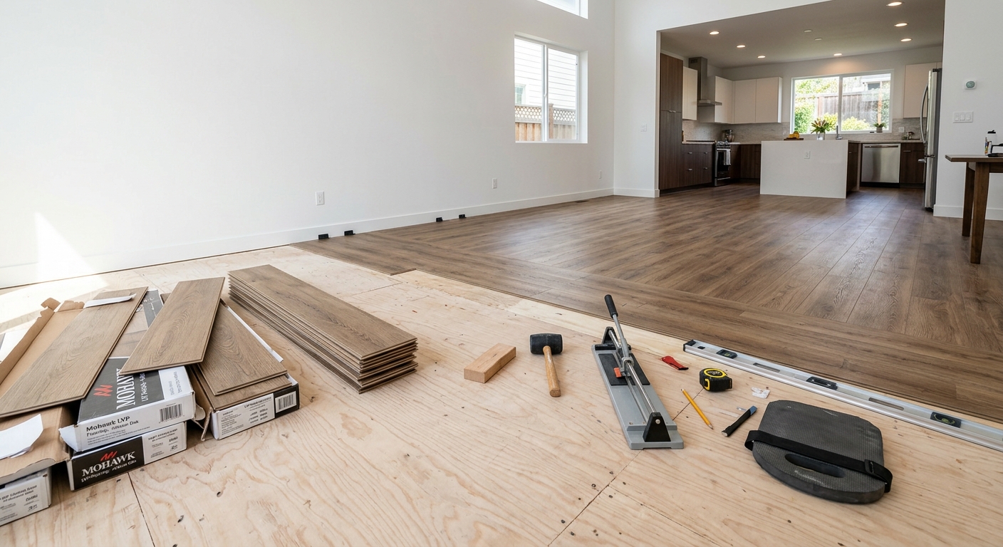 Planchers vinyle de luxe — imperméables et durables, idéaux pour sous-sol.