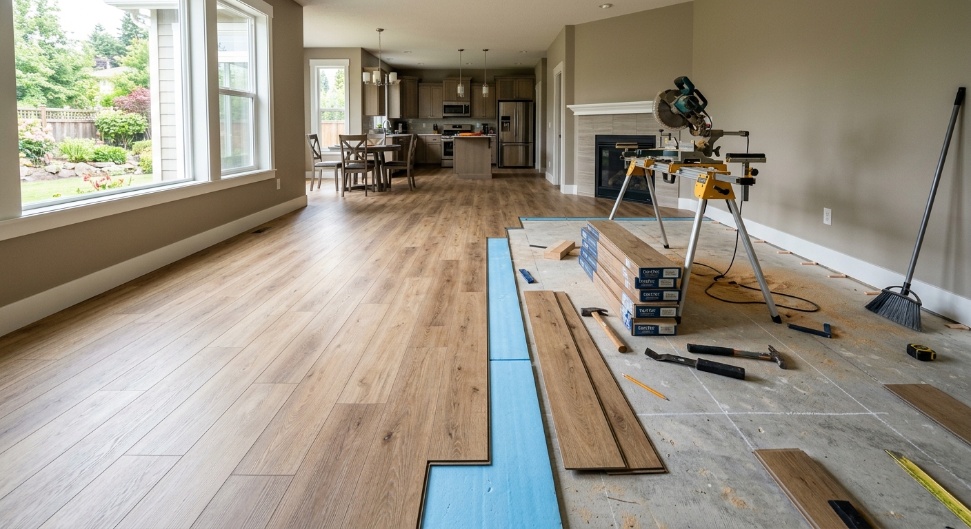 Planchers vinyle de luxe — imperméables et durables, idéaux pour sous-sol.