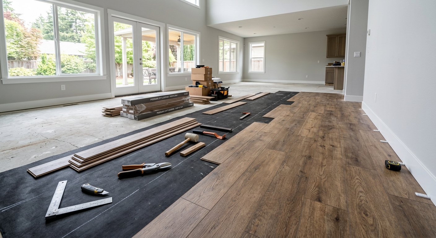Planchers vinyle de luxe — imperméables et durables, idéaux pour sous-sol.