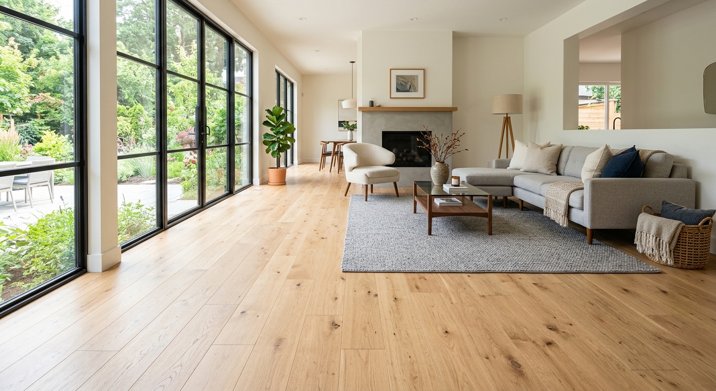 Installation de planchers en bois franc (chêne, érable, noyer) à Saint-Noël.